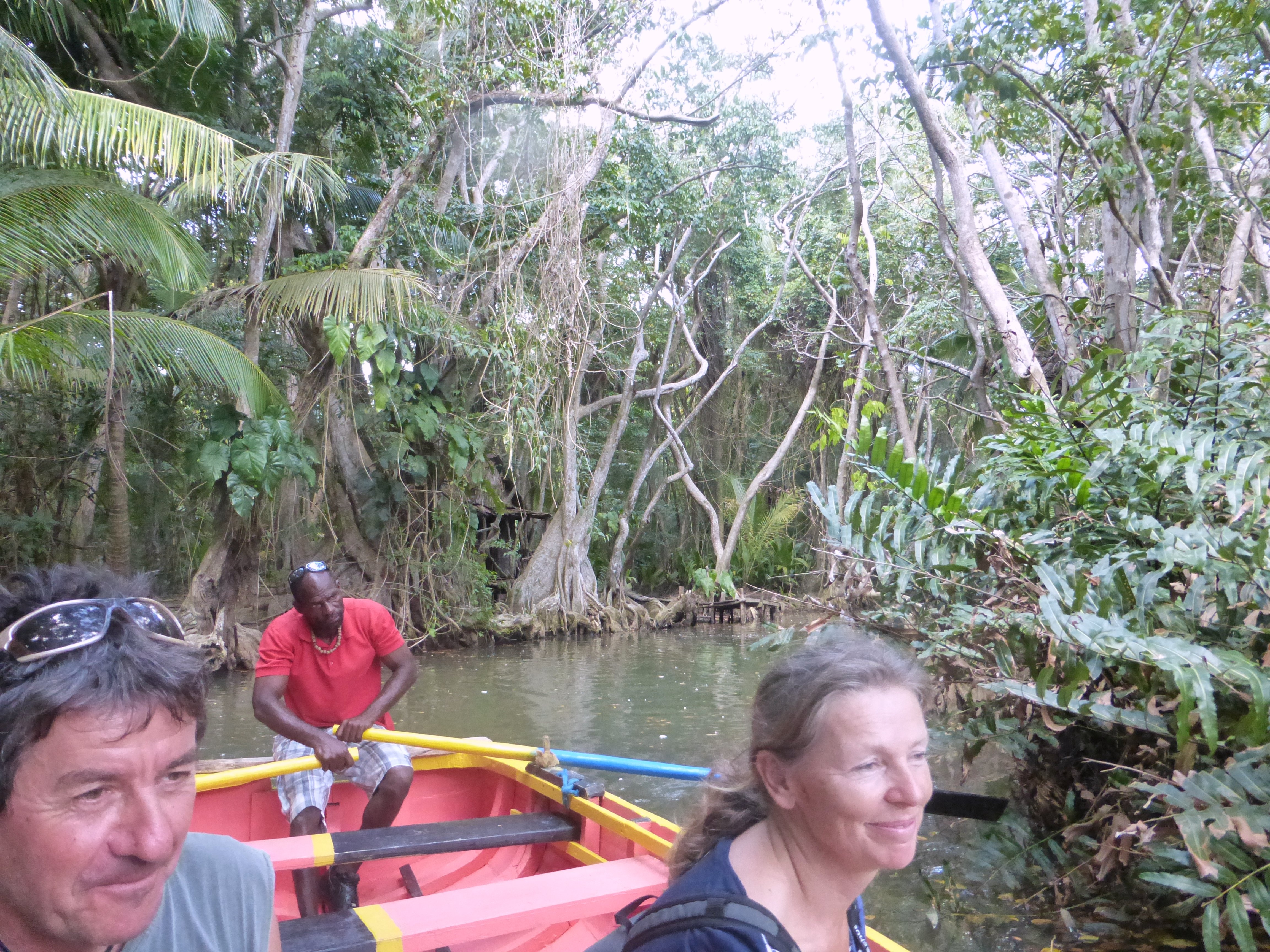 From St Pierre, it was about 50 miles north here to Portsmouth, Dominica – another day, another country, another new courtesy flag. I arrived a couple of days ago, did the Indian River trip yesterday – a standard tourist outing, but very worthwhile and enriched for me more by the French couple who were with me and our guide, ‘James Bond’ (more to do with his girl reputation rather than daring-do), than by the knowledge that Johnny Depp and Keira Knightly were here too (filming one or other of the Pirates of the Caribbean films). Here are some photos.