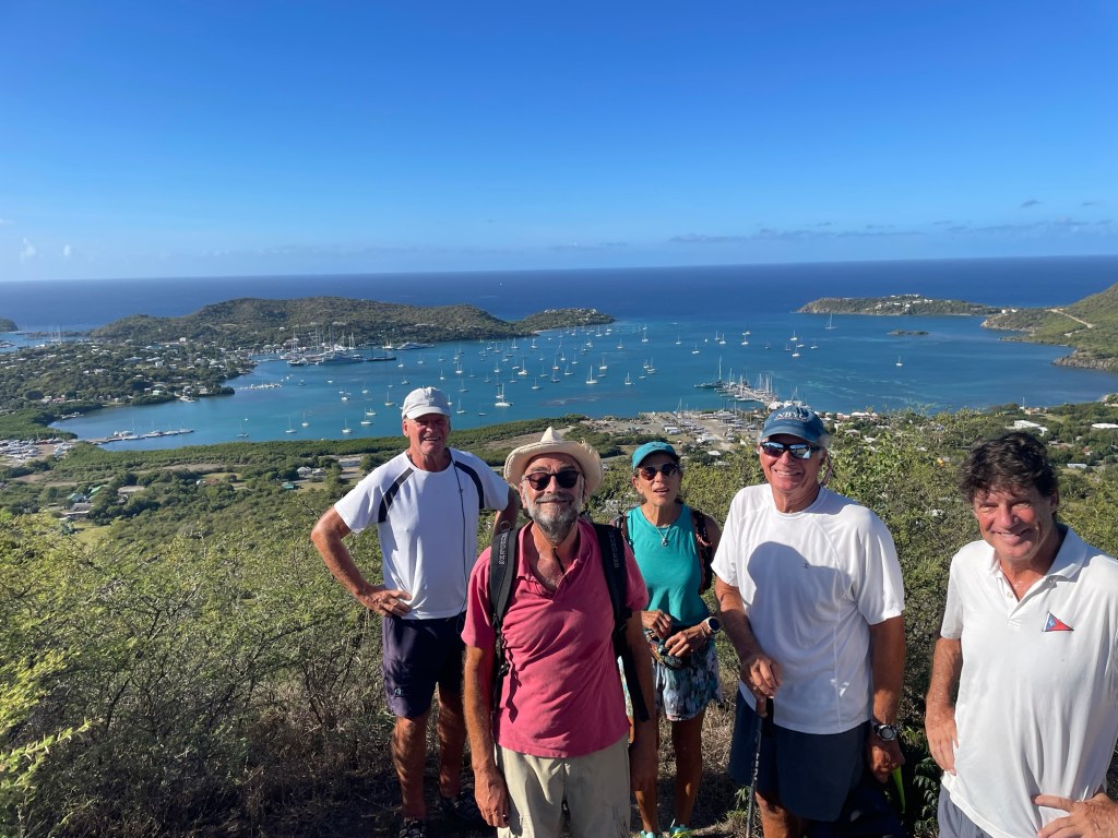 Here, it’s a higgledy piggledy world of small countries permanently inhabited with some lovely friendly folk, overwhelmingly the descendants of 17th and 18th century slaves and a scattering of wealthy outsiders and others, visited in the winter by swarms of us lot, predominantly a relatively well heeled bunch of amiable wrinklies from Europe and North America (with apologies to those who are neither well heeled nor wrinkly). In strict terms of person numbers, of course visiting yacht sailors are vastly outnumbered by cruise ship passengers and regular airborne tourists (also well heeled and wrinkly), but most yacht crews stay much longer, see a lot more and spend more. (At one extreme, Antigua receives nearly a million cruise ship passengers a year (the country’s population is less than 100,000), and an estimated 50,000 people on 13,000 yachts. Apparently cruise passengers contribute $70 -100M to the economy, yachties $20-60M +. That’s per year, and together with hotel guests, is the mainstay of the economy in Antigua, one of the better-off independent countries.)